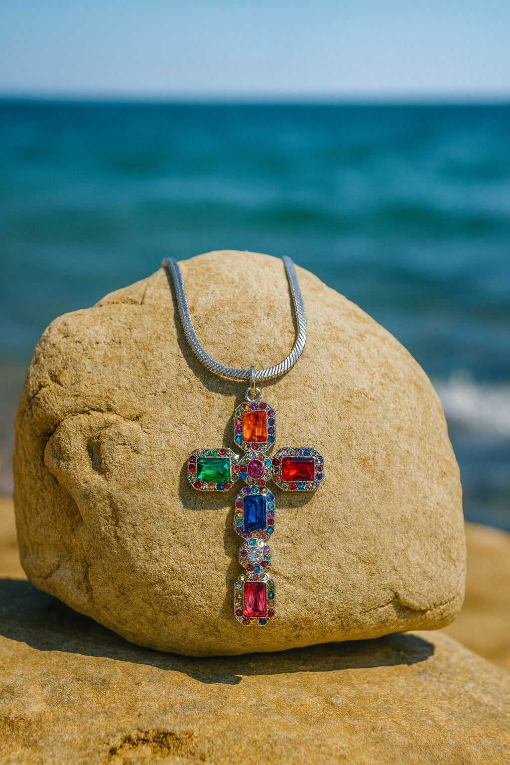 Sa croix multicolore amovible devient votre touche d’audace symbole de créativité, de force et de liberté.